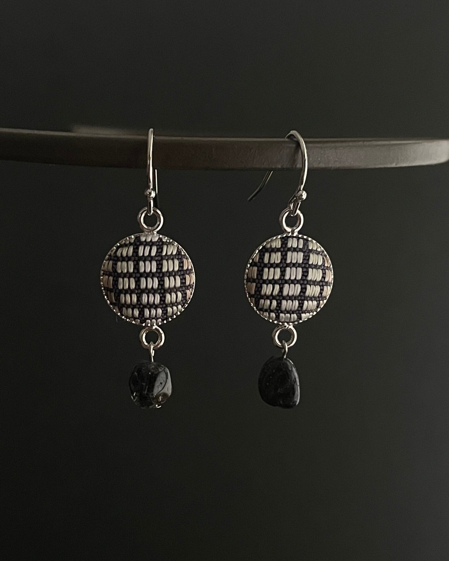 知花花織と天然石のピアス